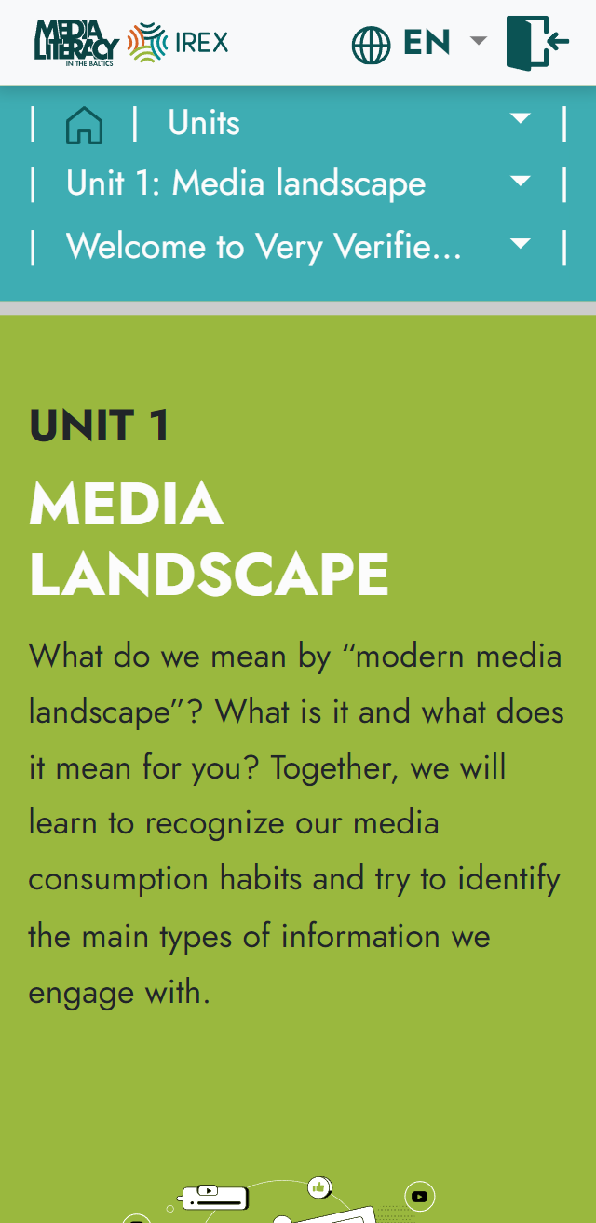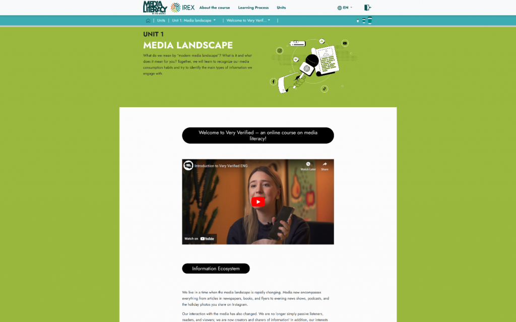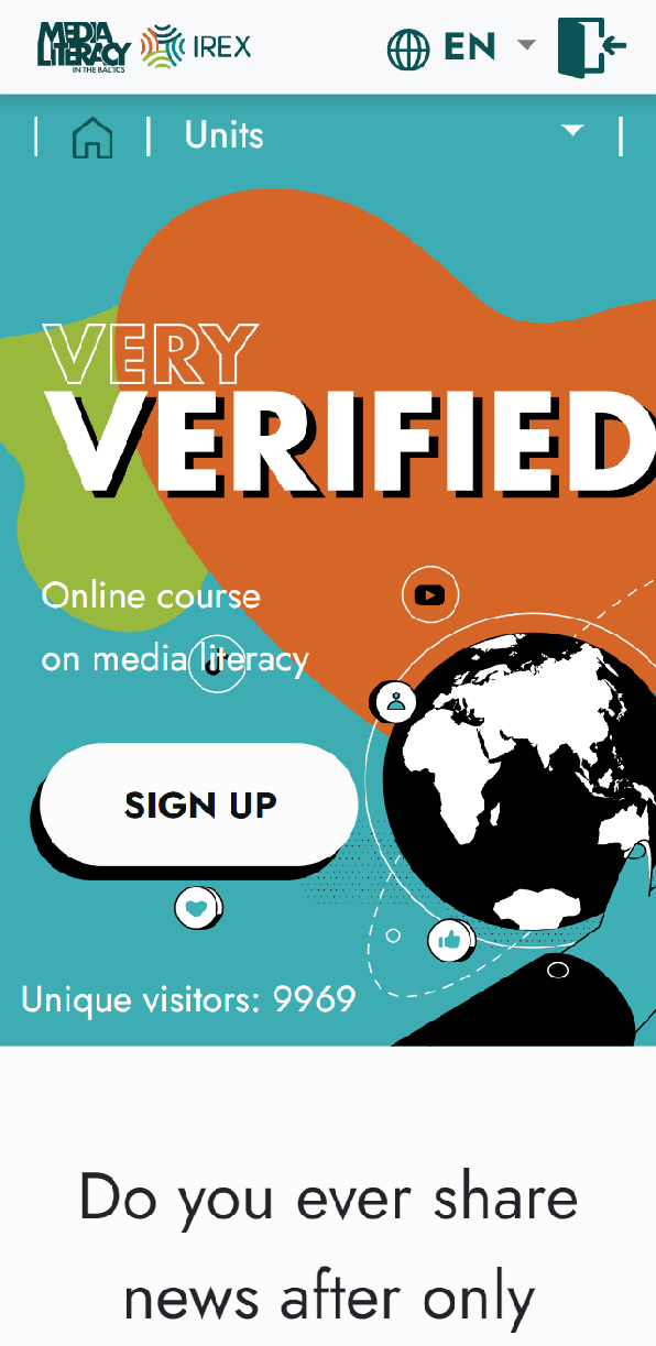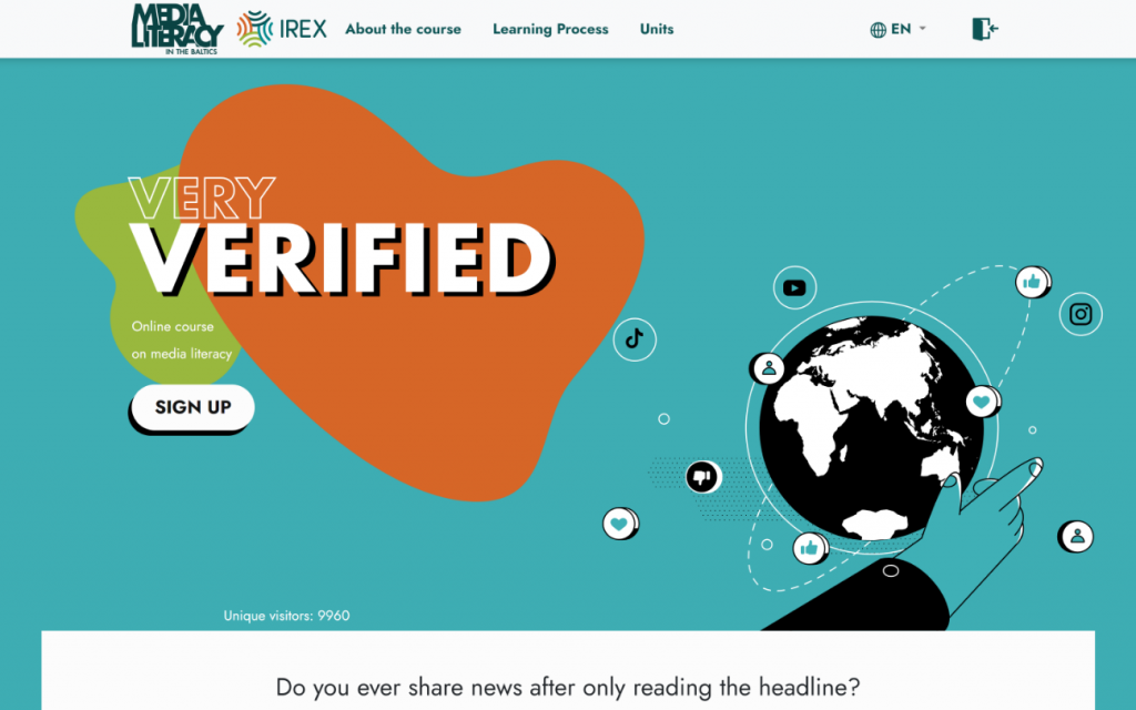 “Very Verified” ir tiešsaistes medijpratības kurss, kas palīdz lietotājiem attīstīt kritisko domāšanu un atpazīt dezinformāciju. Kurss sastāv no piecām nodaļām, aptverot tēmas no mediju ainavas izpratnes līdz manipulācijas atpazīšanai, un ir pieejams vairākās valodās, tostarp latviešu.