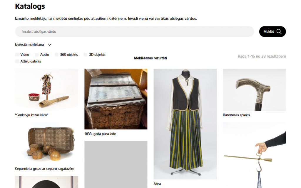 Dienvidkurzemes novada krātuvēm izveidota priekšmetu uzskaites un aprites sistēma. Daļa no priekšmetiem ir apskatāmi publiskajā katalogā, tai skaitā video, 3D veidā vai 360 objektu veidā. Ir arī audiostāsti latviešu un angļu valodās.